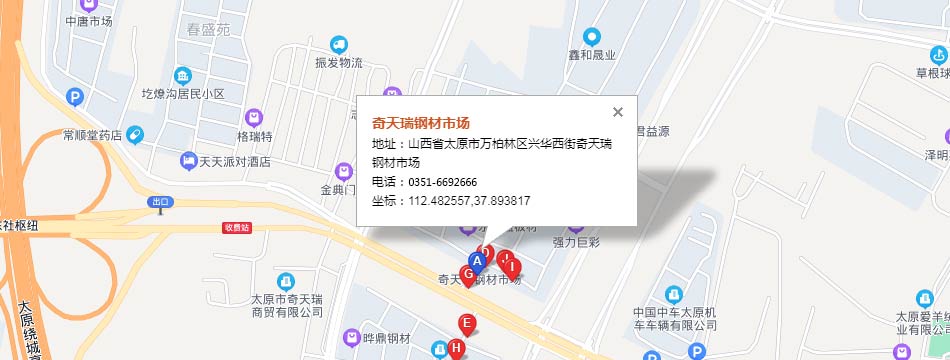 地址:奇天瑞鋼材城北市場A區27-30號   電話: 0351— 6694008